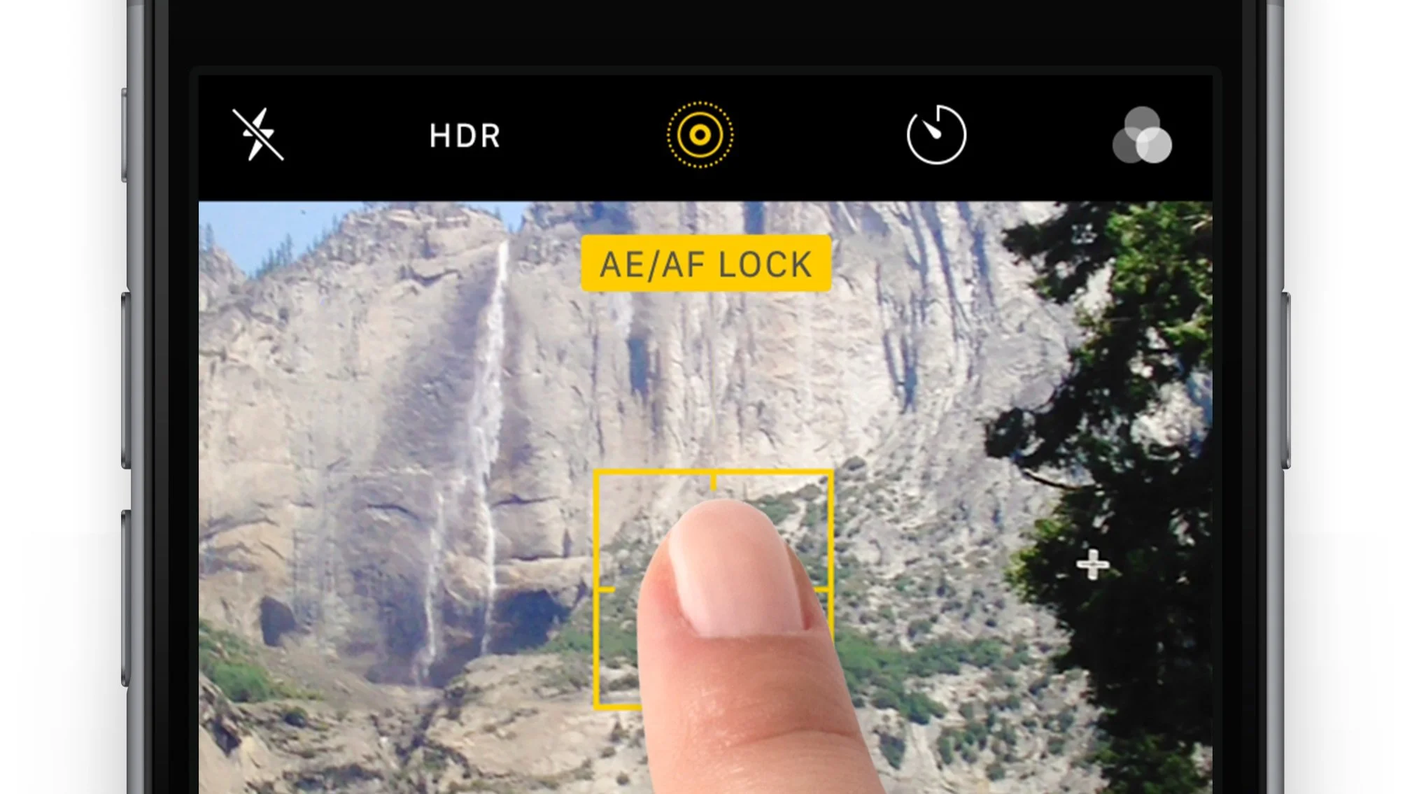 Una volta che la funzione di messa a fuoco automatica è annullata, i fotografi iPhone possono ridurre gli scossoni bloccando manualmente la funzione di Auto-Esposizione/Autofocus (Blocco AE/AF) per stabilizzare indefinitamente il punto focale. Per attivare la funzione di Blocco AE/AF, premi e tieni premuta l'area di messa a fuoco evidenziata per circa tre secondi.